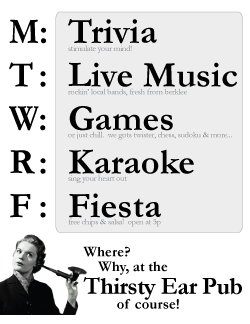 A series of advertisements created for the Thirsty Ear Pub for the different themed nights of the week, as well as special events.