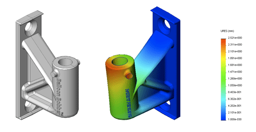 This project involved adapting an existing product to a new use. Retaining some common features, a new bracket was designed to provide secure mounting to a variety of planar surfaces. Engineering calculations were used to design the bracket, followed by finite element analysis to confirm that the new bracket would be able to withstand the desired loading scenarios. A sample part was then rapid prototyped to ensure compatibilty with existing parts. Finally, the solid model was ready to be handed off to the injection molder for manufacture.